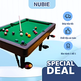 - Sản phẩm được thiết kế giống nnhư một bàn Bi-da thứ thiệt với kích thước mini, nhỏ gọn dành cho bé chơi.