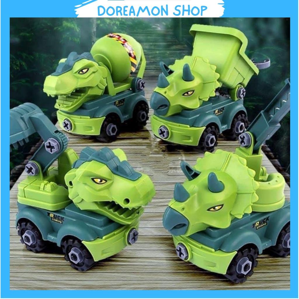 Đồ chơi bộ lắp ráp 4 xe khủng long kèm Tovit, Mô hình khủng long tự lắp ghép. Doreamon Shop