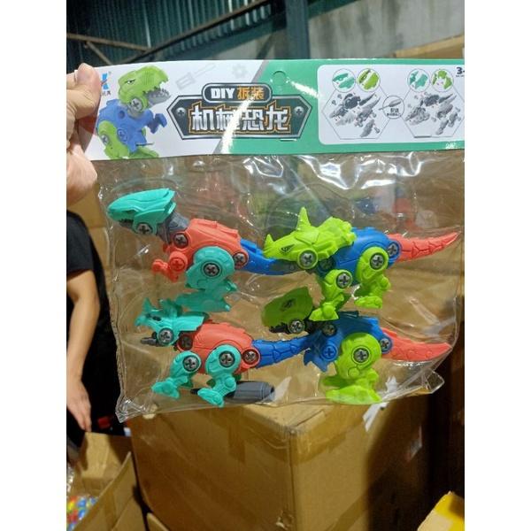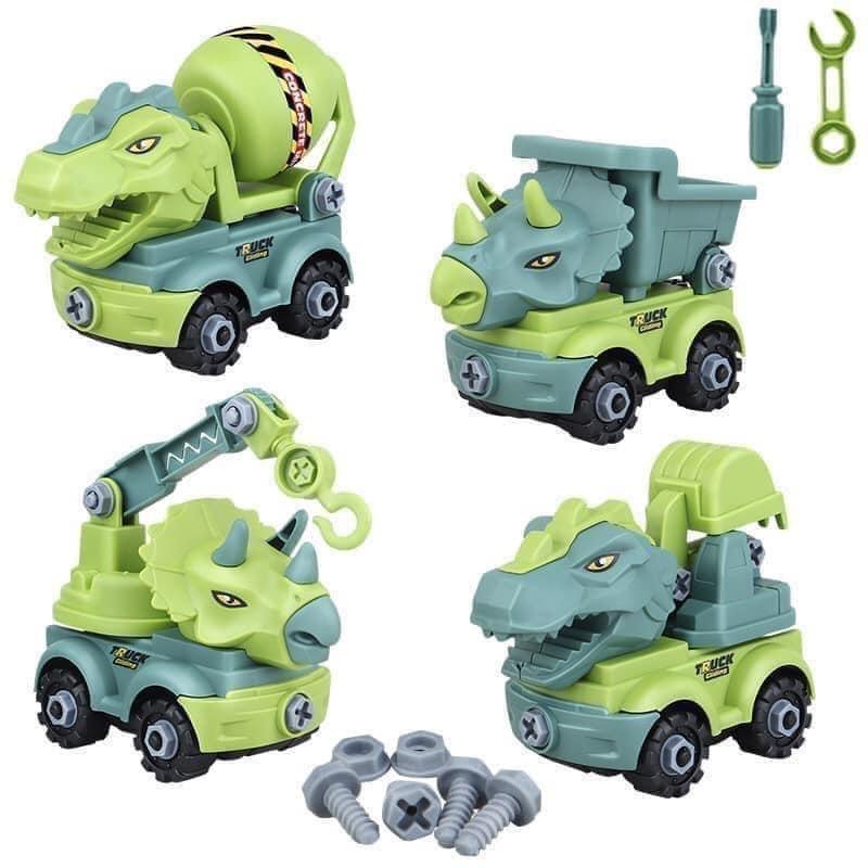 Set 4 xe lắp ghép khủng long công trường, xe ô tô đồ chơi tặng kèm tovit, cờ lê cho bé