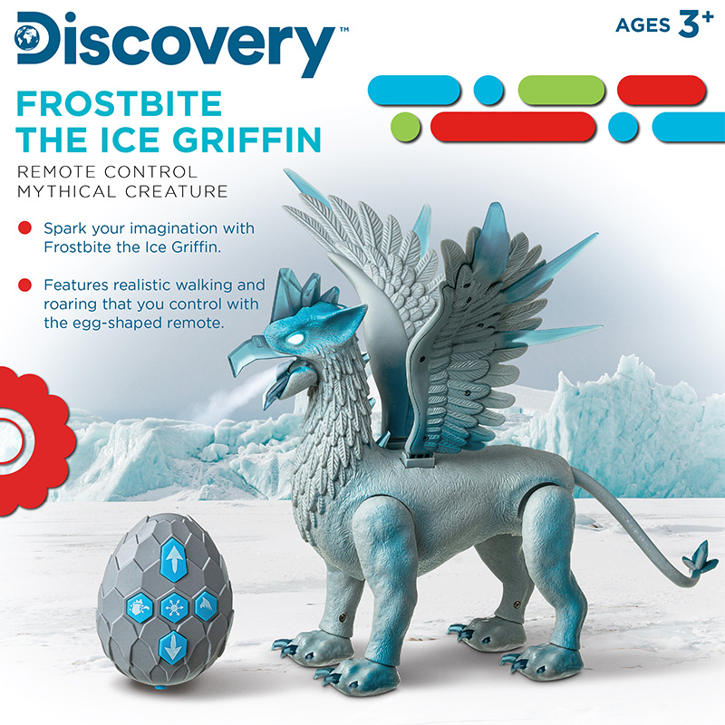 Điểu sư băng giá - 1312006301 của thương hiệu DISCOVERY #MINDBLOWN với khả năng phun khói độc đáo. Điểu Sư sở hữu 2 tiếng gầm thể hiện hai trạng thái tấn công và phòng thủ tách biệt. Với mỗi bước đi đầy uy nghiêm, Điểu Sư sẽ vỗ đôi cánh mạnh mẽ, và đôi mắt sẽ sáng lên như tia chớp. Bé sẽ được điều khiển dũng mãnh này di chuyển tiến, lùi, và trái, phải. Với từng khớp chuyển động như thật, bé sẽ cảm nhận được sự mạnh mẽ trong từng động tác của Điểu Sư này.