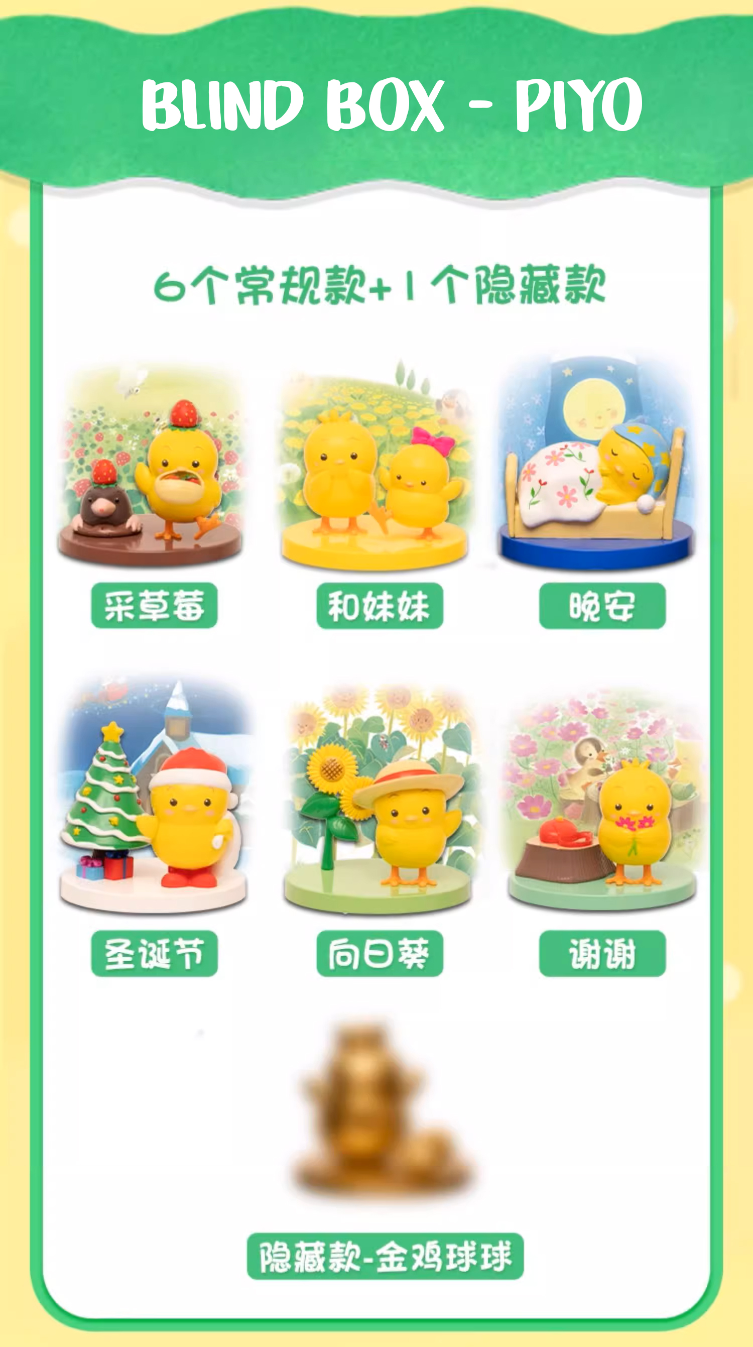Thương hiệu: Gakken Shanghai Xuất xứ thương hiệu: Nhật Bản Kích thước: 7070100 mm Chất liệu: Nhựa PVC Đồ chơi hộp mù - Gà con Piyo là một sản phẩm đáng yêu và tương tác cho trẻ em. Khi bạn mở hộp, bạn sẽ được bất ngờ bởi việc bóc ra những chú gà con piyo với các thiết kế khác nhau, tạo nên sự đa dạng và thú vị. Thiết kế khác nhau của từng chú gà con Piyo, mỗi thiết kế gắn liền với một câu chuyện tạo ra sự thú vị và sự kỳ diệu khi mở hộp
