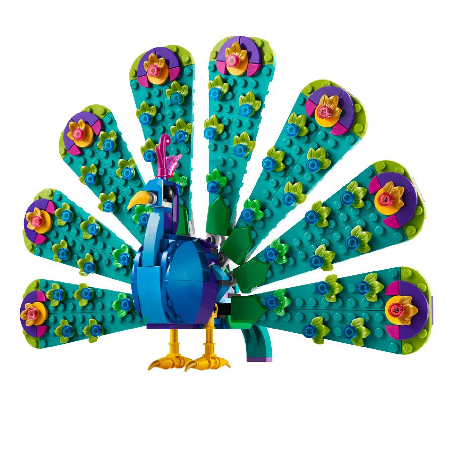 Khám phá thế giới động vật đặc sắc với bộ trò chơi LEGO Creator Mô hình Chim công sặc sỡ. Bạn có thể chơi với một con công xinh đẹp và xòe những chiếc lông đuôi nổi bật và tuyệt đẹp của nó. Sau đó, hãy xây dựng lại nó thành một con chuồn chuồn có đôi cánh và đuôi đang bay trên bệ hoa huệ, hoặc một con bướm đầy màu sắc với đôi cánh có thể cử động được trên bệ hoa.