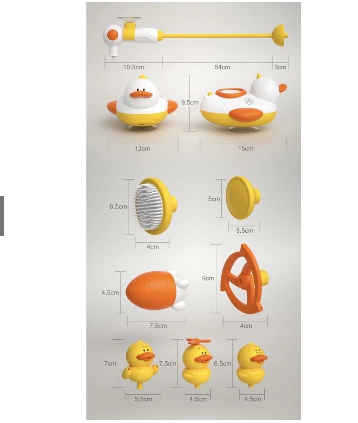 − Vòi tắm con vịt được thiết kế phong cách dễ thương, có thể hút bơm nước, an toàn và không thấm nước, có thể phát nhạc và làm cho bé thích thú hơn khi tắm.