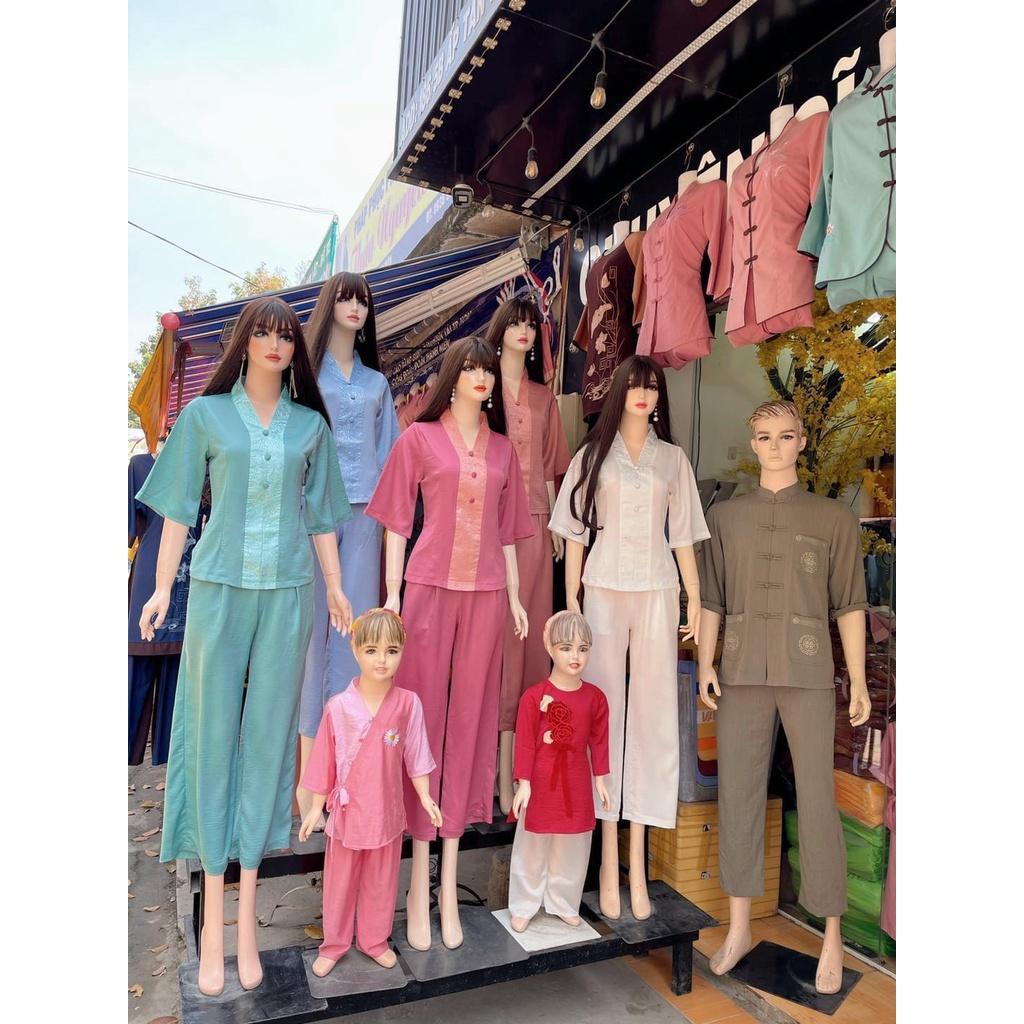 Quần áo phật tử, đồ lam đi chùa mẫu bà lai gấm #quanaophattu