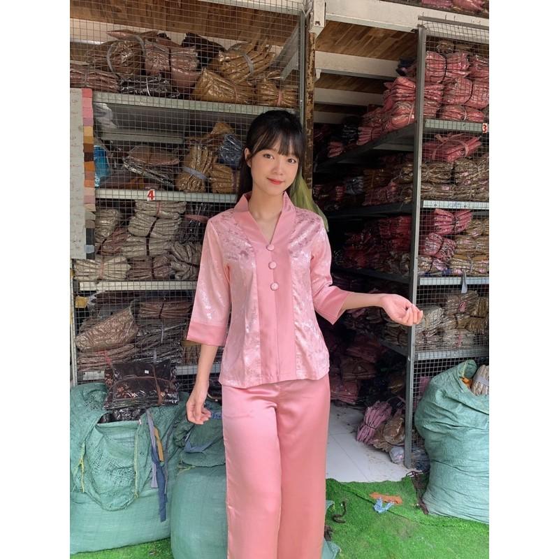 LỤA SEN SANG TRỌNG Chất liệu vải lụa cao cấp mềm mướt_ không xổ lông _ dày dặn kiểu dáng đơn giản, thanh lịch kết hợp quần ống rộng tạo nên sự sang trọng Sản