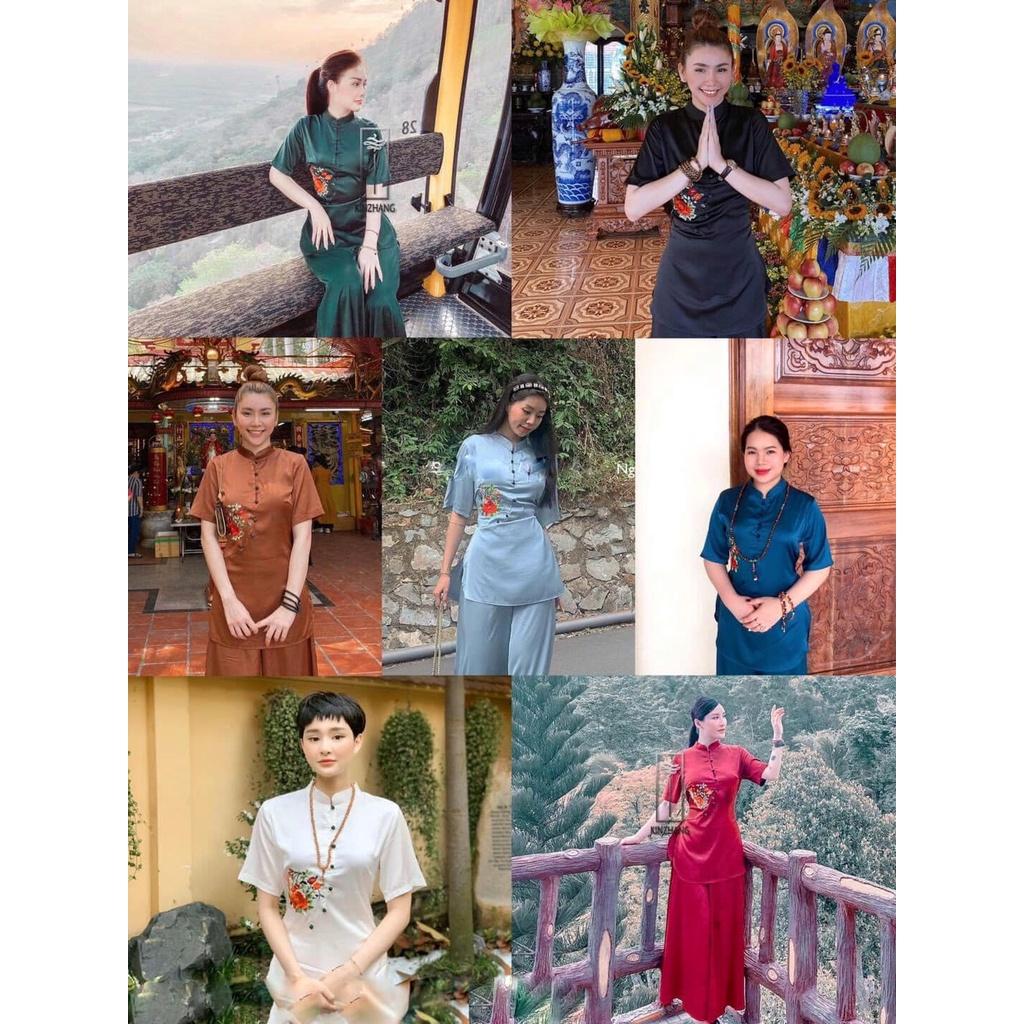 ✨ĐỒ LAM ĐI CHÙA #Mã Freeship Xtra RP028# Đồ Đi Chùa PR028 Vải Lụa Cao Cấp Thêu Hoa Thắt Dây Cực Đẹp