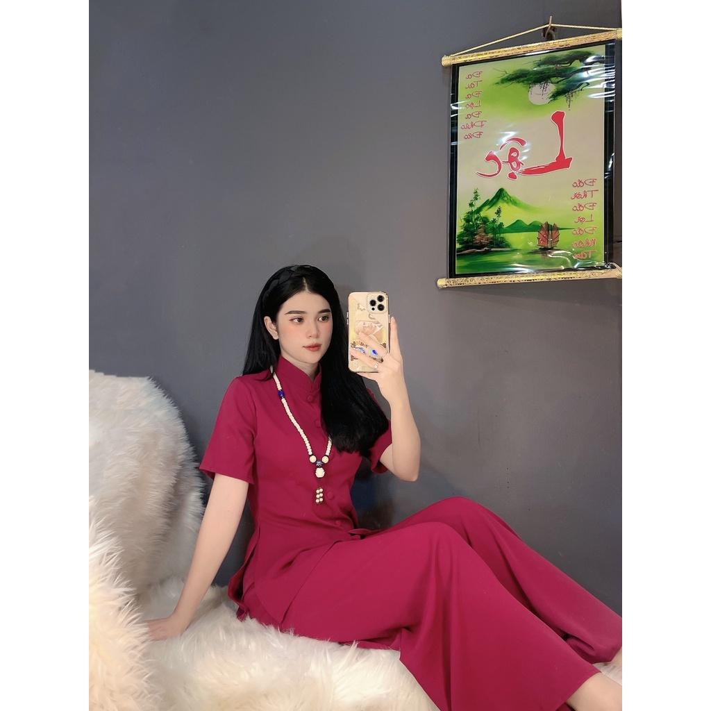 LỤA SEN SANG TRỌNG Chất liệu vải lụa cao cấp mềm mướt_ không xổ lông _ dày dặn kiểu dáng đơn giản, thanh lịch kết hợp quần ống rộng tạo nên sự sang trọng Sản