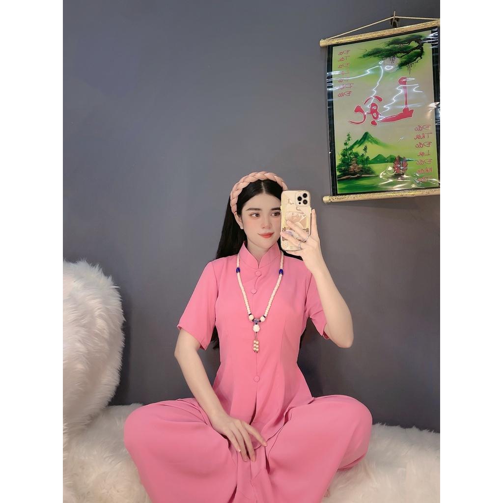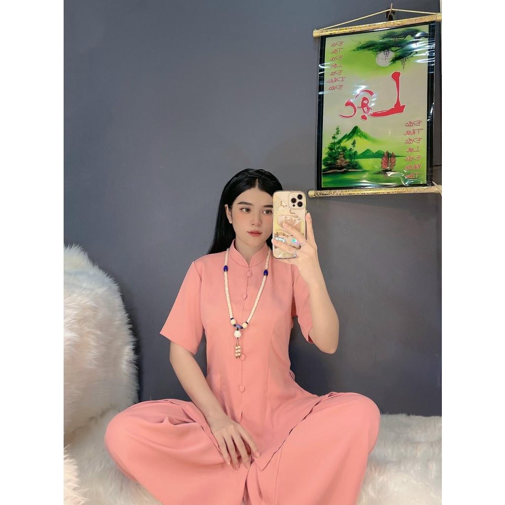 Mẫu pháp phục nữ - quần áo Phật tử đi chùa, đồ lam chất kate lụa mềm có co giãn Sen Hồng 0898553583