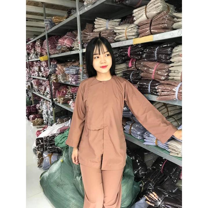 Mẫu pháp phục nữ - quần áo Phật tử đi chùa, đồ lam chất kate lụa mềm có co giãn Sen Hồng 0898553583