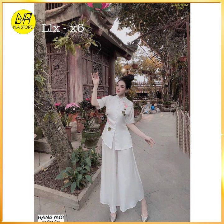 sét bộ đồ nữ quần ống suông rộng phối áo thêu hoa mặc ơ nhà đi chơi duyên dáng mẫu mới siêu hot có bigsize đẹp xuất sắc Màu sắc: y hình Size : M