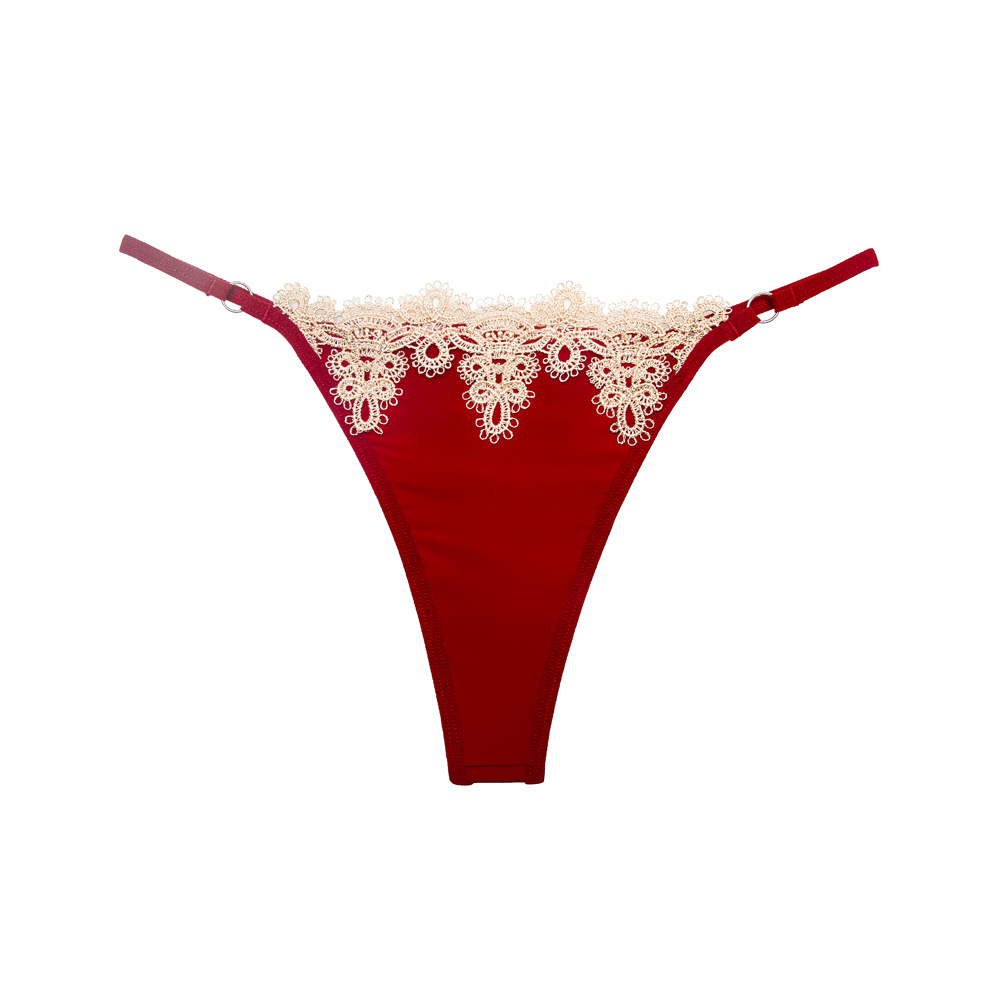Màu sắc: Đỏ đô Chất liệu: Ren mềm BRA: Fresize và có tăng đơ điều chỉnh độ rộng, móc gài sau lưng QUẦN Chữ Y/Đùi: - S: V3 dưới 80cm - M: V3 từ 80-95cm