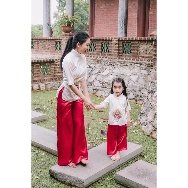 ✨Đồ Lsm Đi Chùa Thêu Con Công Mẹ và Bé