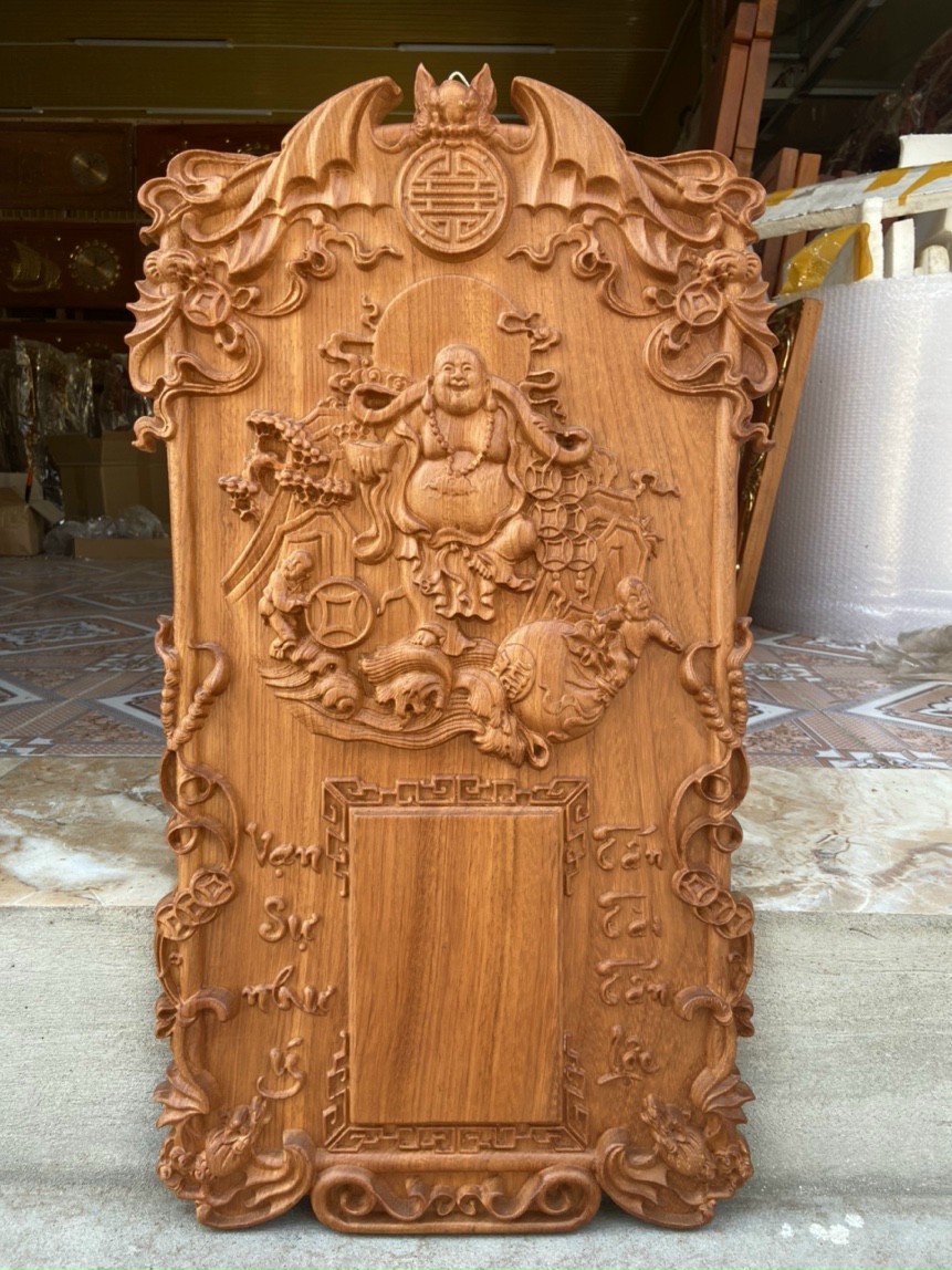 ✨Đốc lịch treo tường khắc phật di lặc bằng gỗ gõ đỏ kt 40×70×4cm