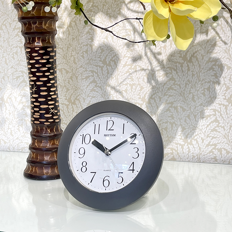Đồng hồ treo tường / để bàn Rhythm 4KG652WR08, dùng pin (AA x 1), vỏ nhựa màu xám. Kích thước 17.8 x 4.9cm, trọng lượng 500g. Máy kim trôi chjay cực êm, chính xác, bền bỉ. Nắp vặn có cao su có khả năng chống hơi nước nên sử dụng được trong phòng tắm, nhà vệ sinh, nơi hơi ẩm cao.