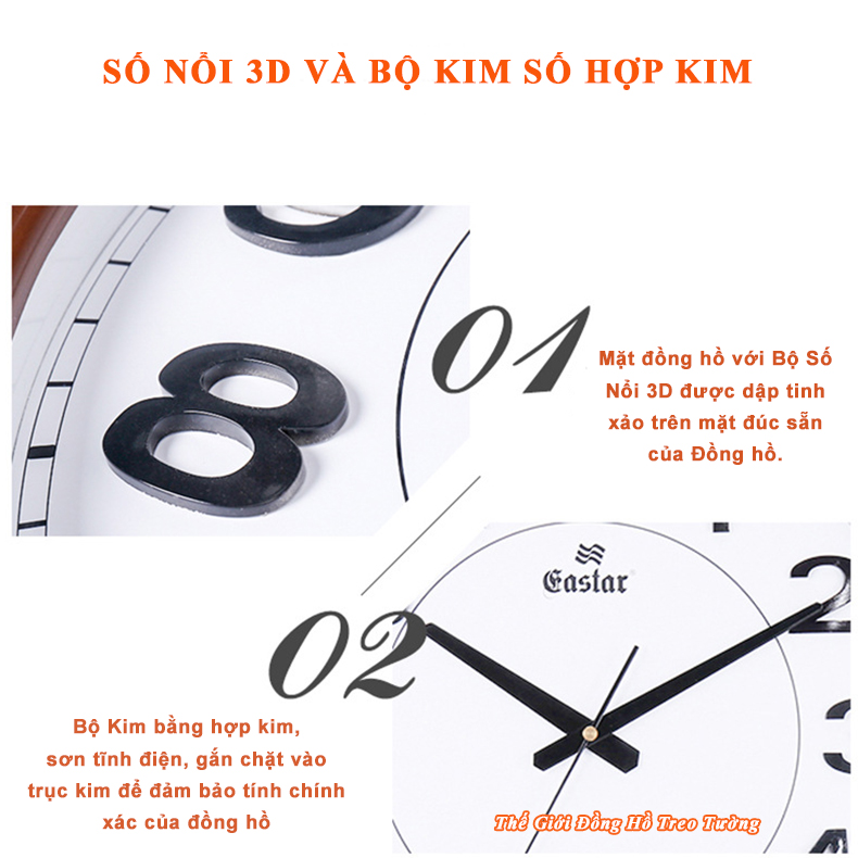 Đồng Hồ Treo Tường EASTAR 3016 có 6 Điệu Nhạc Gõ Báo giờ - Máy Kim Trôi Nhật - Số nổi 3D