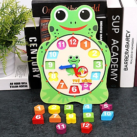 Mua tại TiktokĐồ Chơi Giáo Dục Thông Minh - Tuệ Minh chào mừng ba mẹ ghé Gian_Hàng_Đặc_Biệt - Nơi mà ba mẹ sẽ tìm được những Món Đồ Chơi Tốt Nhất cho bé yêu của mình. Việc học xem giờ với bé chưa bao giờ là dễ cả nên Tuệ Minh xin được giới thiệu với ba mẹ bộ đồ chơi đồng hồ phân biệt màu sắc hình khối có hình con ếch và con cú. Thông tin chi tiết sản phẩm đồng hồ phân biệt hình khối, màu sắc hình con ếch, con cú Một bộ sản phẩm gồm có: 1 chiếc đồng hồ gỗ có khoét các khối hình ở vị trí các con số trên mặt đồng hồ. 12 khối hình nhỏ có hình dạng khác nhau được sơn 6 màu: xanh lá mạ, xanh lá cây, hồng, đỏ, cam, xanh dương. 2 chiếc kim đồng hồ bằng gỗ có thể xoay quanh trục.
