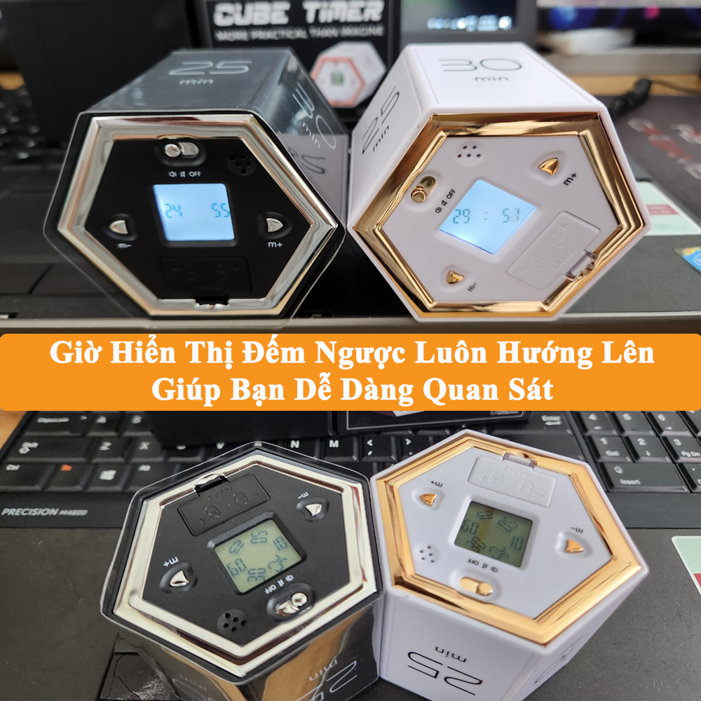 Đồng Hồ Pomodoro Hình Khối Lục Giác KUNBE Đếm Ngược Hẹn Giờ Nấu Ăn, Tập Thể Dục, Quản Lý Thời Gian Hiệu Quả