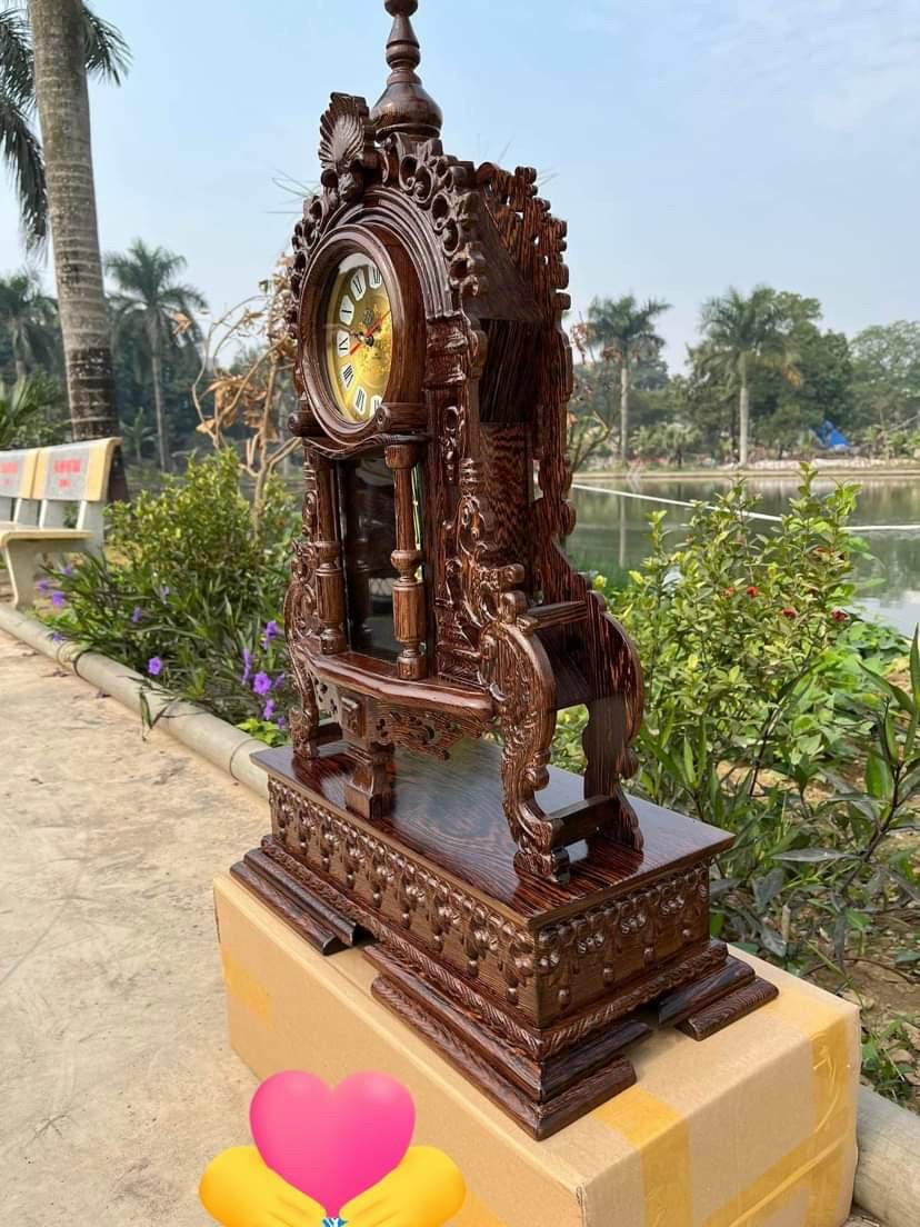 Đồng hồ quả lắc để bàn tân cổ điển + với chân đế được làm bằng chất liệu gỗ mun đuôi công tự nhiên 100%  Kích thước đồng hồ cao 70 ngang mặt 45 sâu 15cm Kích thước thân đế cao 15cm ngang rộng 52cm sâu 29cm Đồng hồ quả lắc + thân đế được làm và trạm khắc các phần vào mới nhau rất tỉ mỉ kỳ công ,Đi hầu hết tất cả mọi chi tiết góc ngách nội dung của đế và đồng hồ đều được ngọt tỉa chỉnh sửa hoàn toàn bằng tay thủ công .Đồng thời đồng hồ được kiểm định rất kỹ lưỡng như cho vào thẩm sấy cho gỗ khô kiệt .Mục đích trống dập nứt vênh mo mối mọt .Rồi cho vào trà nhám đánh giấy giáp kỹ sờ mát lạnh ,Song cho vào phun lót phun bóng mờ giữ lại mầu sắc vân gỗ tự nhiên .Đồng hồ và đế được làm và hoàn thiện do bàn tay khối óc tài hoa từ những người thợ giàu kinh nghiệm  cũng như tay nghề cao trong làng nghề truyền thống .Chính vì thế đồng hồ và đế đã đáp ứng đầy đủ những tiêu trí ( Đẹp bền rẻ ) Thẩm mỹ nghệ thuật với chất lượng tuyệt vời