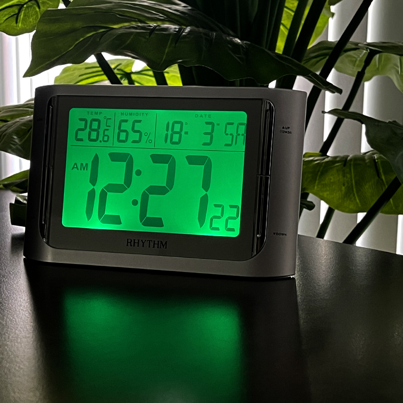 Mua tại TiktokĐồng hồ mặt điện tử báo thức Rhythm LCT061NR19. Dùng 2 pin AA. Kích thước 18.6 x 11.5 x 5.0cm, 305g. Vỏ nhựa cao cấp sơn nhũ bạc / Mạ crom sáng bóng. Hiển thị lịch ngày tháng thứ, nhiệt độ, độ ẩm. Chỉnh giờ báo thức bằng tiếng bíp bíp, báo lập lại (Snooze). Màn hình có đèn led màu xanh hỗ trợ xem giờ trong tối, hiển thị lịch bằng 5 thứ tiếng Anh, Đức, Pháp, Ý, Tây Ban Nha.