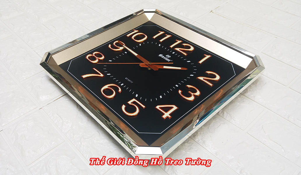 • Đồng hồ Treo tường Cao Cấp EASTAR KIM TRÔI NHẬT có Dạ quang (*), mặt vuông vát góc, kích thước 34,5 x 34, dày 5 cm.