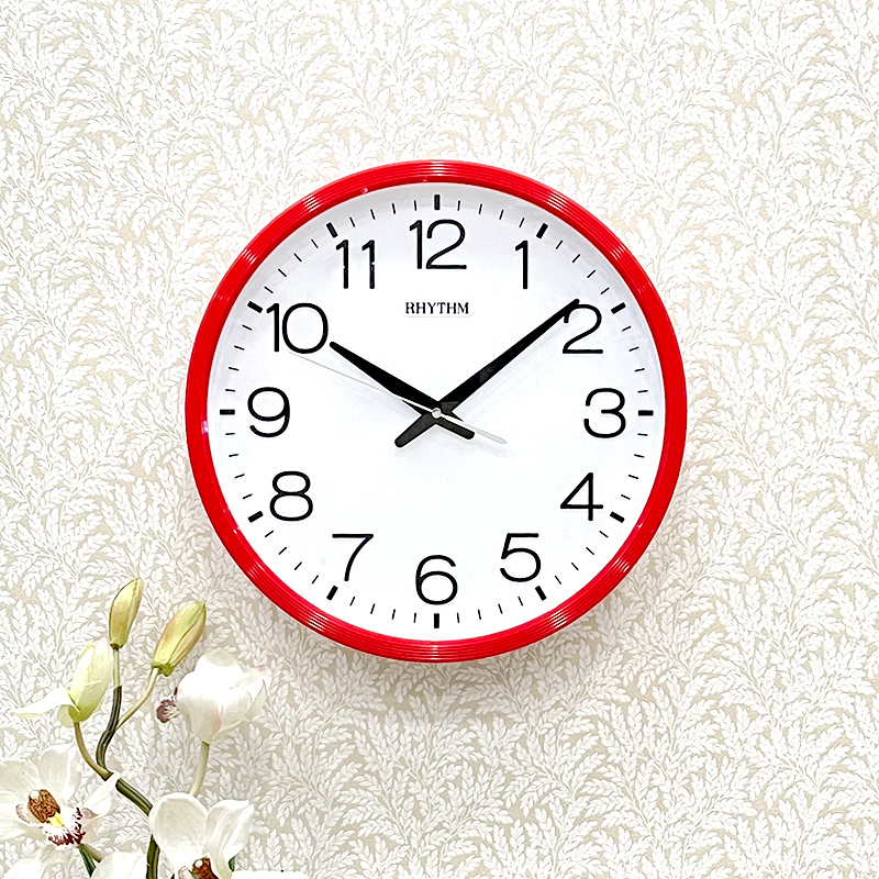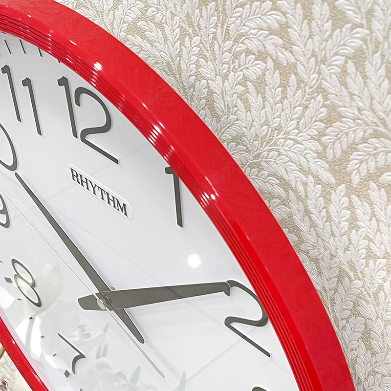 Đồng hồ treo tường Nhật Bản Rhythm CMG494NR01, dùng pin (AAx1), vỏ nhựa màu đỏ. Kích thước 36.0 x 4.4cm, trọng lượng 855g. Máy kim trôi cực êm, chính xác, bền bỉ. Lắp ráp tại