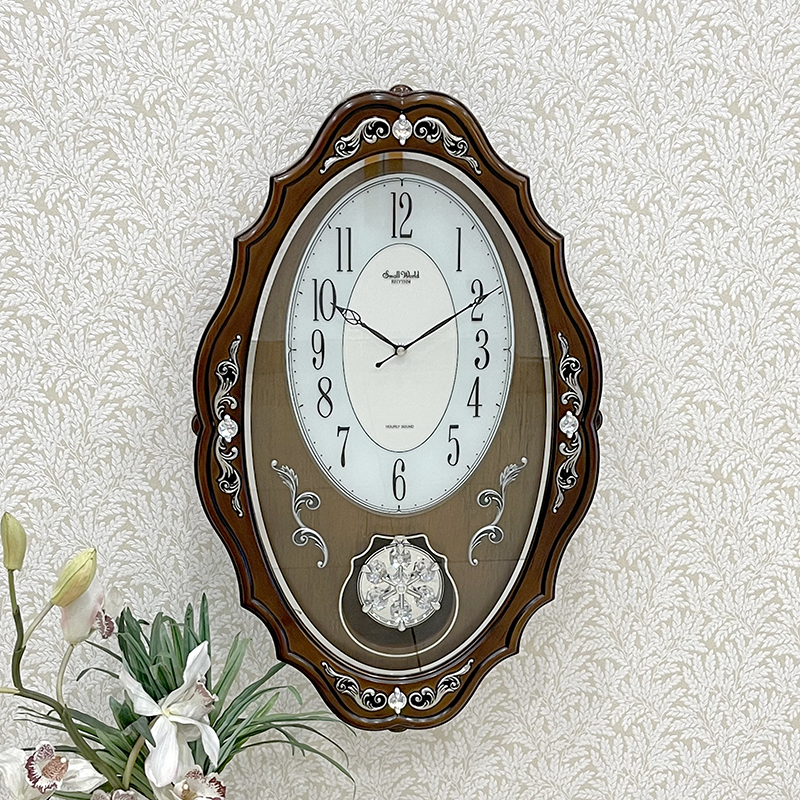 ✨Đồng hồ treo tường Rhythm COMFORT SWING PENDULUM CMJ462CR06 (Kích thước 36.0 x 58.0 x 11.0cm) Vỏ màu nâu
