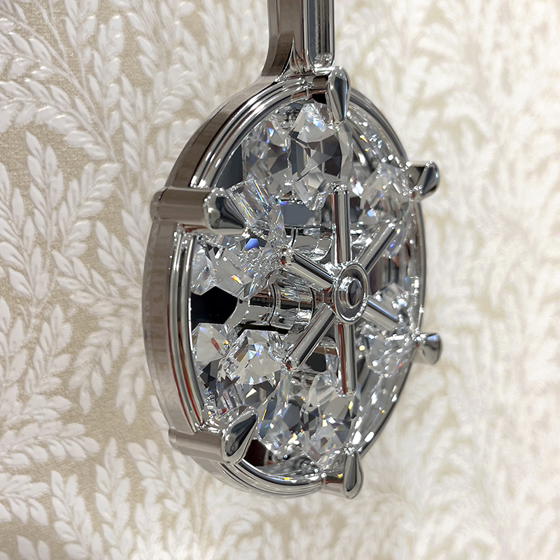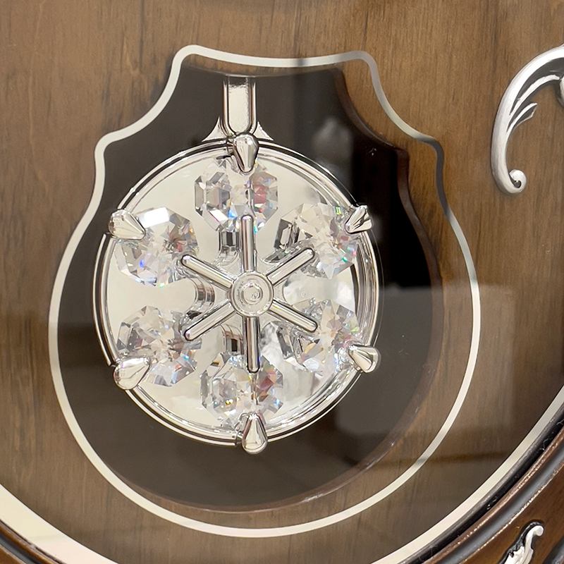 Đồng hồ treo tường Nhật Bản Rhythm CMJ462CR06 , dùng 3 pin (C x 2, AA x 1). Vỏ gỗ cẩn đá pha lê kết hợp Polyresine chạm sắc xảo, nhũ bạc. Kích thước 36.0 x 58.0 x 11.0cm, trọng lượng 3.66kg. Âm thanh nổi thính phòng SIP ( Sound In Place ) ngân vang với 4 chọn lựa chế độ phát nhạc gồm : 6 bản nhạc cổ điển / 3 bản giáng sinh / Nhạc chuông nhà thờ Westminster kết hợp gõ điểm giờ / 4x4 Westminster - 15 phút, 30 phút, 45 phút dạo nhạc và mỗi đầu giờ gõ điểm giờ. Chế độ tự động ngưng phát nhạc ban đêm từ 11:00 đêm đến 5:45 sáng. Núm chỉnh âm lượng tiện lợi. Cụm quả lắc, vỏ đồng hồ cẩn pha lê .