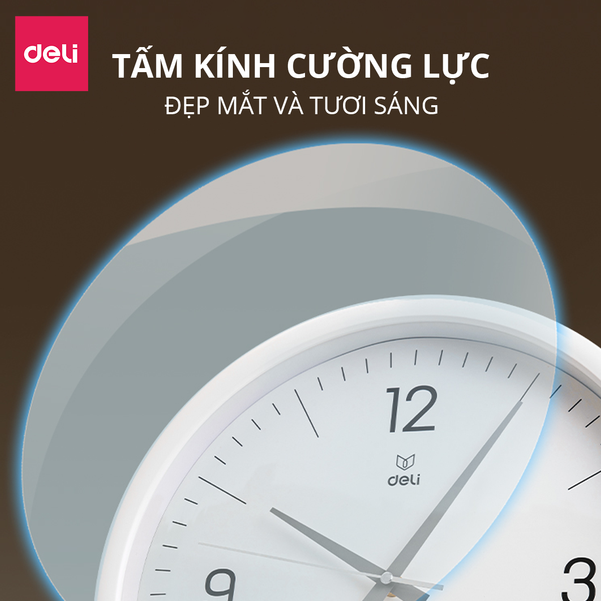 Tên sản phẩm: Đồng hồ treo tường vân gỗ cao cấp Deli