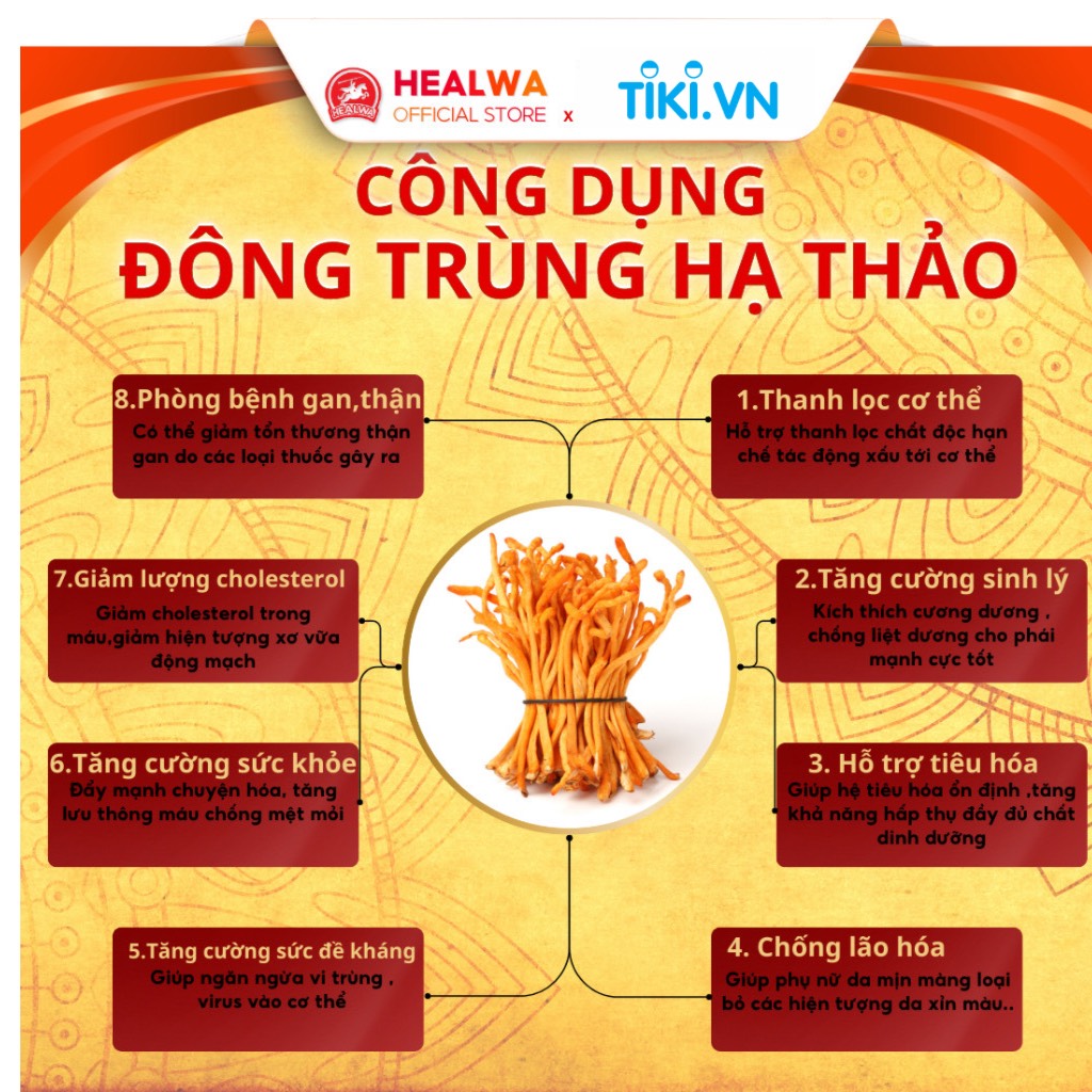 Mua tại TiktokHEALWA - 100% Thực phẩm sức khỏe cho người Việt Sản phẩm không phải là thuốc, không có tác dụng thay thế thuốc chữa bệnh CÔNG DỤNG CỦA ĐÔNG TRÙNG HẠ THẢO