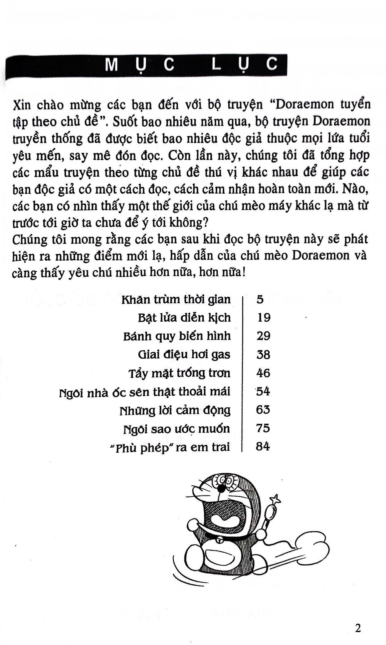 Mua tại TiktokXin chào mừng các bạn đến với bộ truyện "Doraemon tuyển tập theo chủ đề". Suốt bao nhiêu năm qua, bộ truyện Doraemon truyền thống đã được biết bao nhiêu độc giả thuộc mọi lứa tuổi yêu mến, say mê đón đọc. Còn lần này, chúng tôi đã tổng hợp các mẩu truyện theo từng chủ đề thú vị khác nhau để giúp các bạn độc giả có một cách đọc, cách cảm nhận hoàn toàn mới. Nào, các bạn có nhìn thấy một thế giới của chú mèo máy khác lạ mà từ trước tới giờ ta chưa để ý tới không? Chúng tôi mong rằng các bạn sau khi đọc bộ truyện này sẽ phát hiện ra những điểm mới lạ, hấp dẫn của chú mèo Doraemon và càng thấy yêu chú nhiều hơn, hơn nữa!