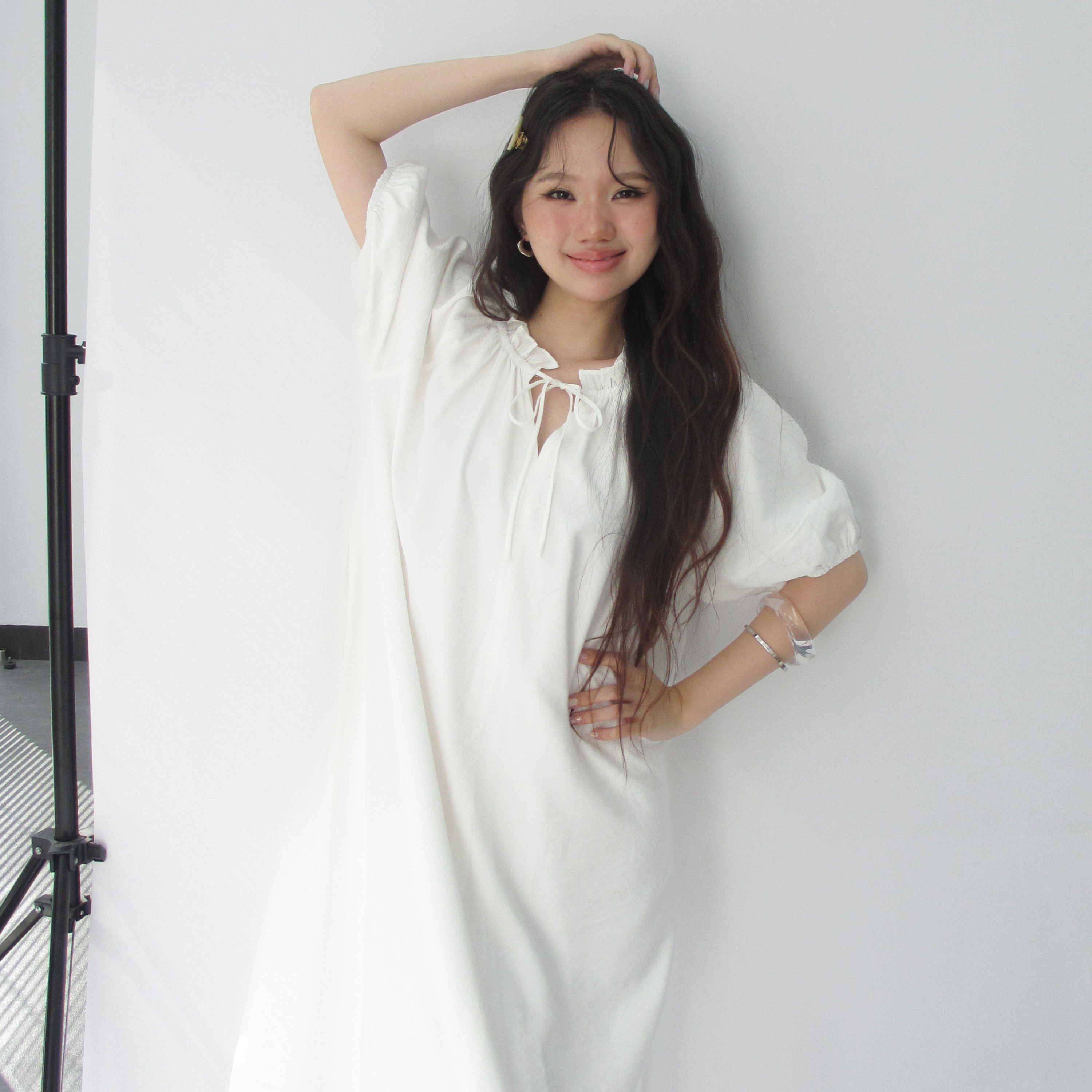 ✨DOTTIE - Đầm dài cổ bèo cột nơ - Trắng - D0714