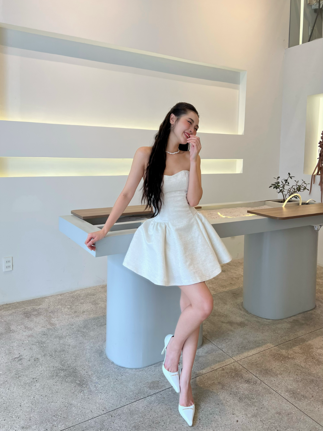 Váy sát nách cổ sen tầng bèo xinh xỉuuuuu váy có kèm quần bảo hộ nên ce vẫn thoải mái nha 2 màu: đen - kem •S/M Sản phẩm này là tài sản cá nhân