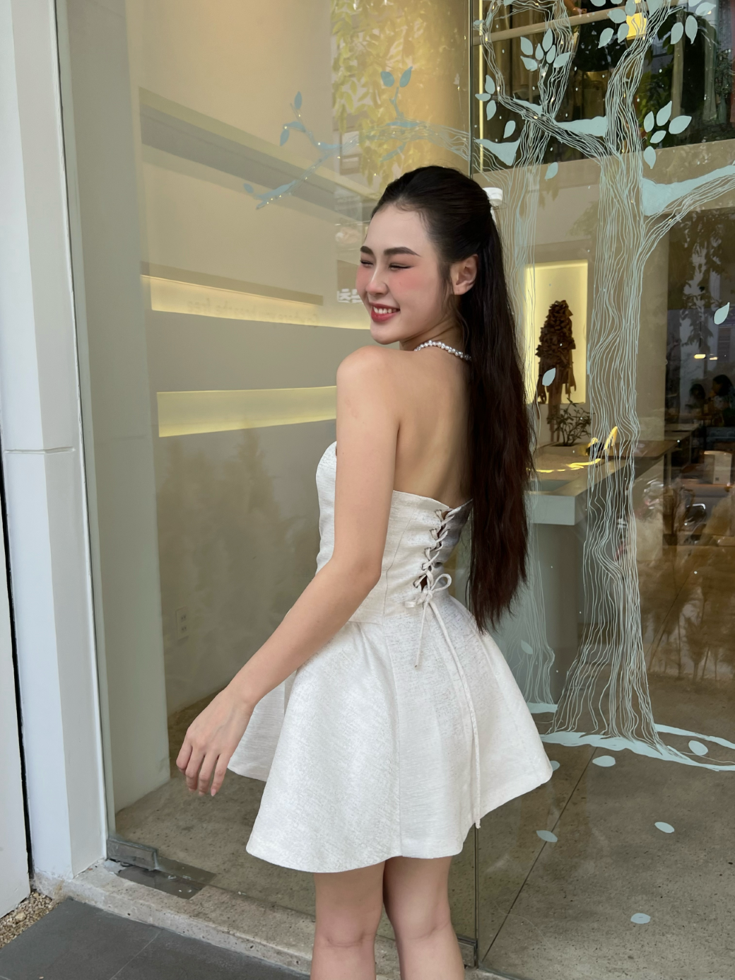 Váy thiết kế cổ yếm dáng ngắn xoè bồng nơ bên cao cấp..vibe tiểu thư sang chảnh đây ạ Shop về 3 màu đủ size S.M Sản phẩm này là tài sản cá nhân được