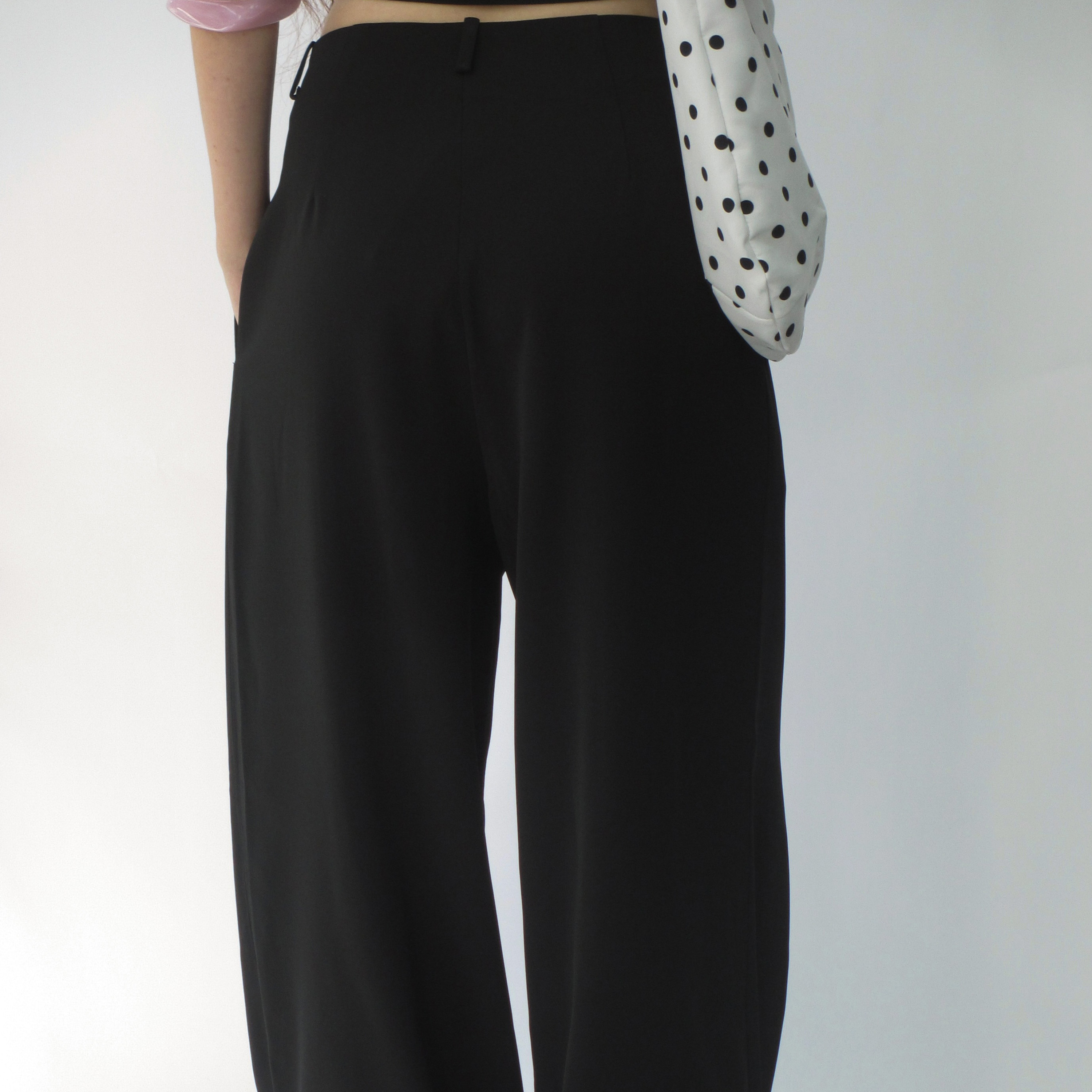 CHẤT LIỆU TUYTSY COTTON CÓ ĐỘ RŨ NHẸ QUẦN MÀU ĐEN FORM QUẦN ỐNG RỘNG PHẦN LAI QUẦN XẺ HAI BÊN VÀ TAG LOGO NGAY ĐƯỜNG XẺ TẠO ĐIỂM NHẤN PHÍA TRƯỚC ĐƯỢC XẾP 2