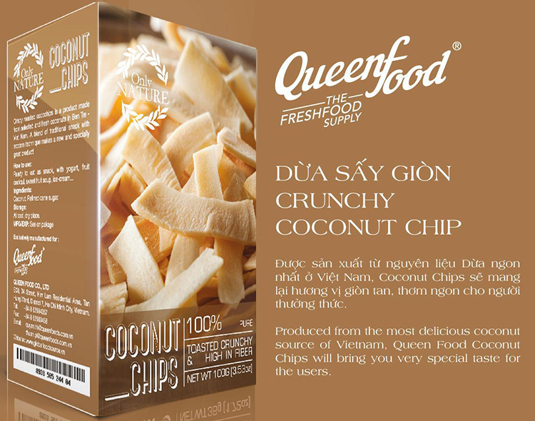 - Dừa Sấy Khô Queenfood Coconut Chips (2 Hộp) là sản phẩm sử dụng phương pháp sấy chân không hiện đại nên có vị giòn tan tự nhiên, thơm ngon, chất lượng vượt trội.