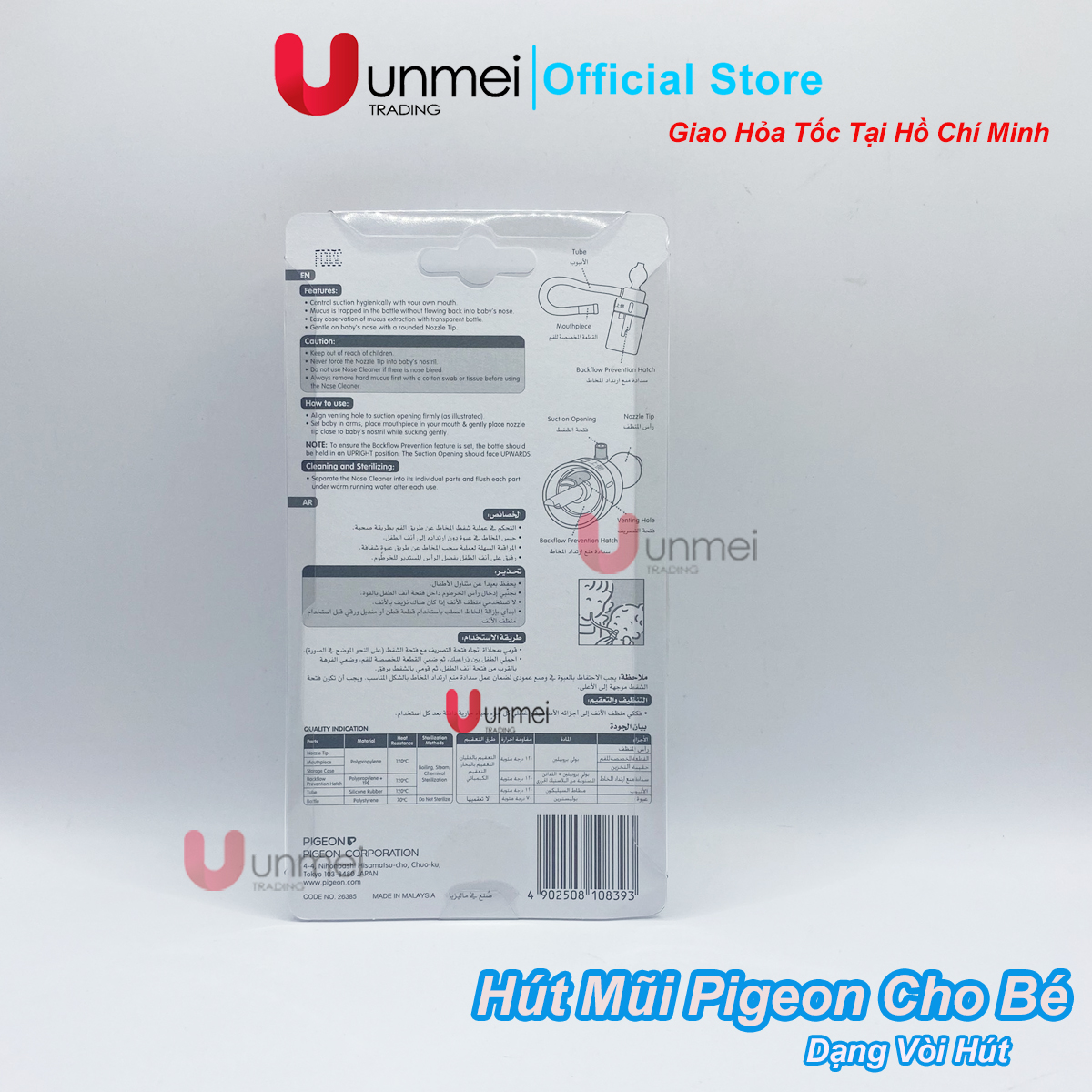 Mua tại TiktokDỤNG CỤ HÚT MŨI CAO SU – VÒI HÚT PIGEON TẠI UNMEI TRADING Vào thời điểm giao mùa, bé yêu dễ mắc các bệnh về đường hô hấp như sổ mũi, nghẹt mũi,…ây cảm giác khó thở, khiến bé quấy khóc. Để giúp bé dễ thở và thoải mái hơn, mẹ nên sử dụng các dụng cụ hút mũi có vòi hút tiện dụng. Dụng cụ hút mũi cao su – vòi hút Pigeon được làm từ chất liệu nhựa PP cao cấp, không chứa BPA và silicon mềm, an toàn cho bé khi sử dụng. Ngoài ra, với dụng cụ hút mũi Pigeon có vòi các mẹ dễ dàng kiểm soát lực hút, chủ động điều chỉnh tốc độ cho phù hợp và không làm bé đau. Chất liệu an toàn, cao cấp: