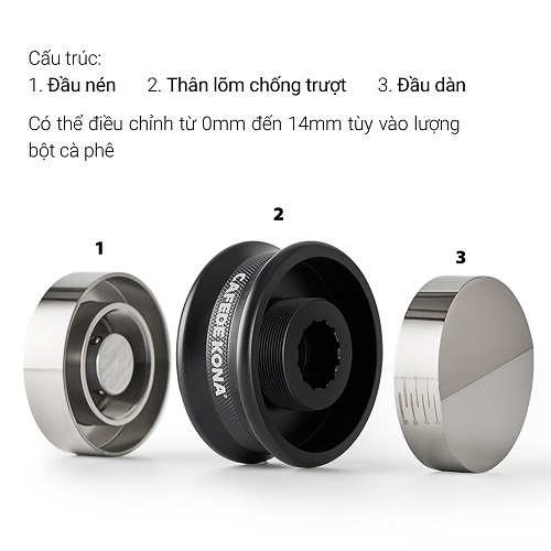 Với thiết kế đơn giản theo cơ chế vặn xoắn của đinh vít, bạn có thể dễ dàng tinh chỉnh độ sâu của puck tamper nhanh chóng để phù hợp với định lượng, độ mịn bột cafe của bạn.