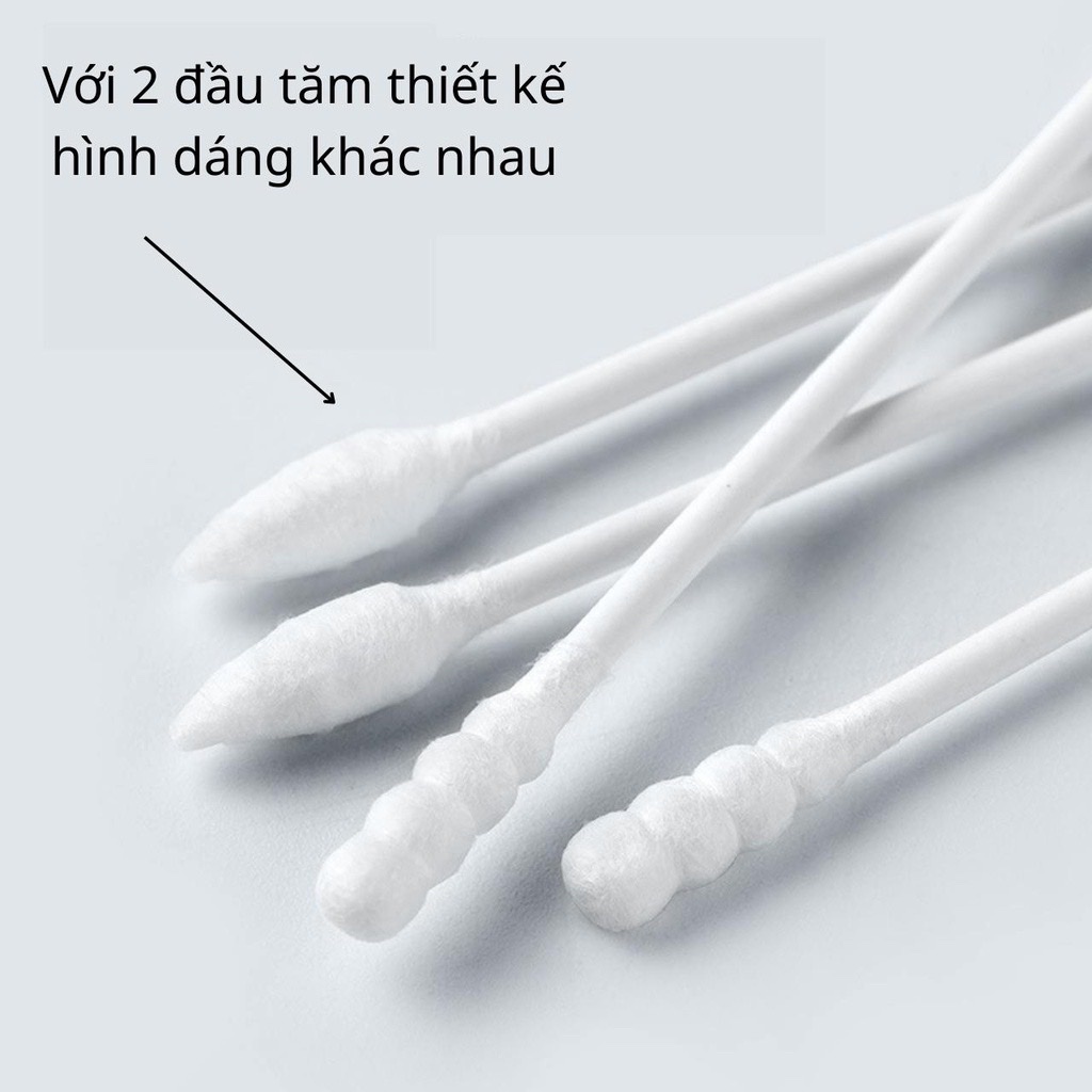 -Dụng cụ trang điểm làm đẹp - Set hộp 200c tăm bông ngoáy tai lớn cao cấp với 2 đầu tăm thiết kế hình dáng khác nhau làm sạch sâu bên trong , an toàn