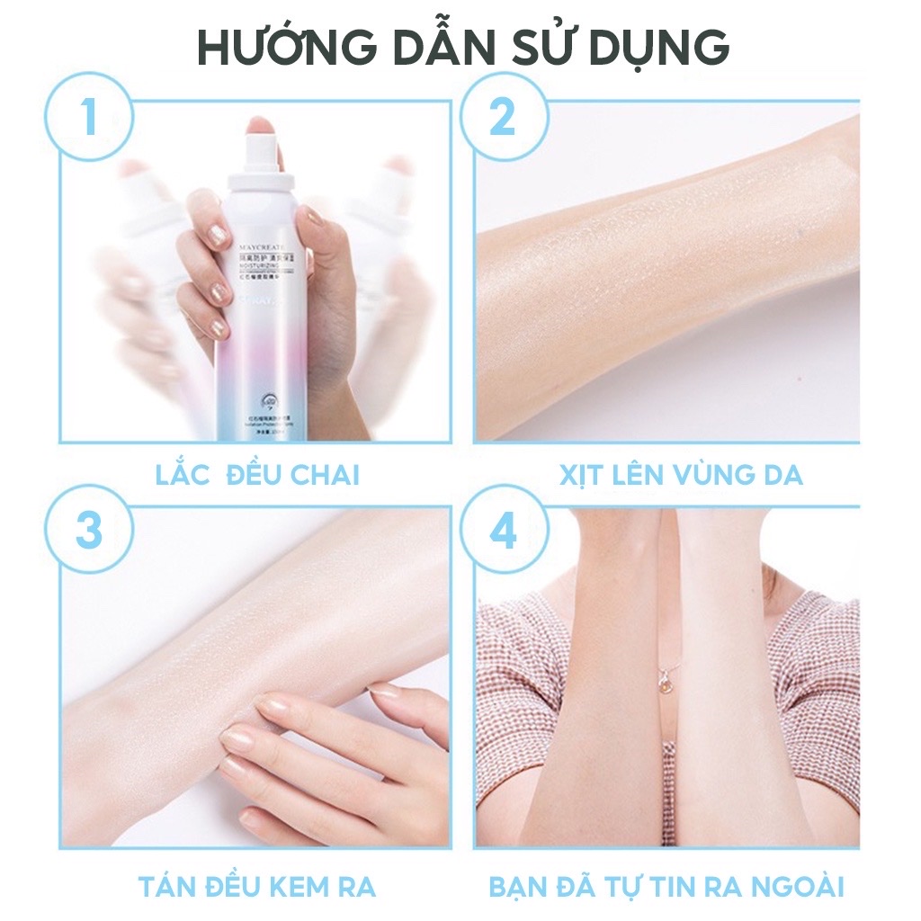 -Dụng cụ trang điểm làm đẹp sức khỏe _ Xịt chống nắng , chống tia UV chai 150ml , bảo vệ cho cả mặt và toàn thân , giữ ẩm da ,chống thấm nước ,không nhờn ,bết dính không tắc nghẽn lỗ chân lông ,phù hợp với mọi loại da  -Xuất xứ : Trung Quốc -Thể tích : 150ml -Xịt chống nắng , dưỡng trắng da là sản phẩm bảo vệ bạn khỏi tia UV , tác nhân gây tổn hại da với dạng màn sương nhẹ , thoáng khí  -Chống nắng dạng xịt phun sương , khi xịt ra có chất lỏng màu trong suốt , không bết dính , dễ dàng thẩm thấu trên bề mặt da  -Sản phẩm có chỉ số SPF 35 và Broad Spectrum phủ rộng chống được UVA và UVB -Có thể dùng cho mặt , nhưng không được xịt trực tiếp lên mặt , mà phải xịt lên tay , sau đó bôi lên  -Sản phẩm không chứa dầu , phù hợp với mọi loại da -Ưu điểm : -Xịt nhanh gọn , không bết dính , không bít lỗ chân lông  -Rất hợp với đi bơi vì không thấm nước  -Cảm giác nhẹ nhàng cho da  -Không gây nhờn  -Chống nước  -Khả năng chịu nước , chống mồ hôi -Không làm tắc nghẽn lỗ chân lông  -Không dầu  -Chai nhỏ gọn rất tiện lợi -Hướng dẫn sử dụng : -Xịt trước khi ra ngoài 30 phút  -Dùng sau trang điểm , giúp lớp trang điểm bền màu , lâu xuống tone , chống đổ nhờn  -Dạng phun sương  -Thời gian giữ được tone từ 8 - 12 tiếng , có thể dùng trước hoặc sau khi trang điểm  -Sản phẩm giúp dưỡng trắng da  Sản phẩm này là tài sản cá nhân được bán bởi Nhà Bán Hàng Cá Nhân và không thuộc đối tượng phải chịu thuế GTGT. Do đó hoá đơn VAT không được cung cấp trong trường hợp này.
