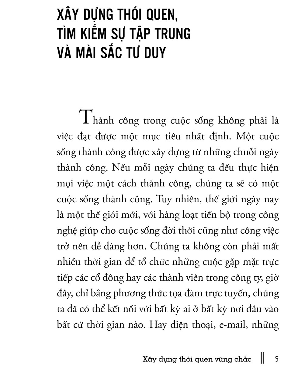 Bạn sẽ thấy rằng thói quen làm việc của mình đã bị phó mặc thích nghi với môi trường xung quanh, hơn là đáp ứng sở thích của chính bạn. Hãy sử dụng cuốn thú vị này như một cơ hội để đánh giá mọi thứ. Hãy dừng lại giữa dòng công việc không ngừng nghỉ để đánh giá cách bạn thực hiện nó. Chỉ bằng cách có trách nhiệm về thói quen hằng ngày của mình bạn mới có thể thực sự tác động tới những gì quan trọng nhất đối với mình.