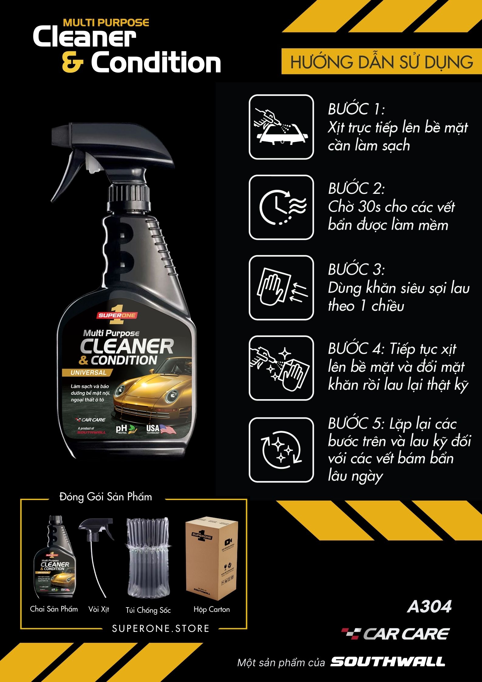 LÀM SẠCH VÀ BẢO DƯỠNG BỀ MẶT NỘI - NGOẠI THẤT Ô TÔ Dung Dịch Làm Sạch Và Bảo Dưỡng Đa Năng Super One Multi Purpose Cleaner & Condition - Universal là sản