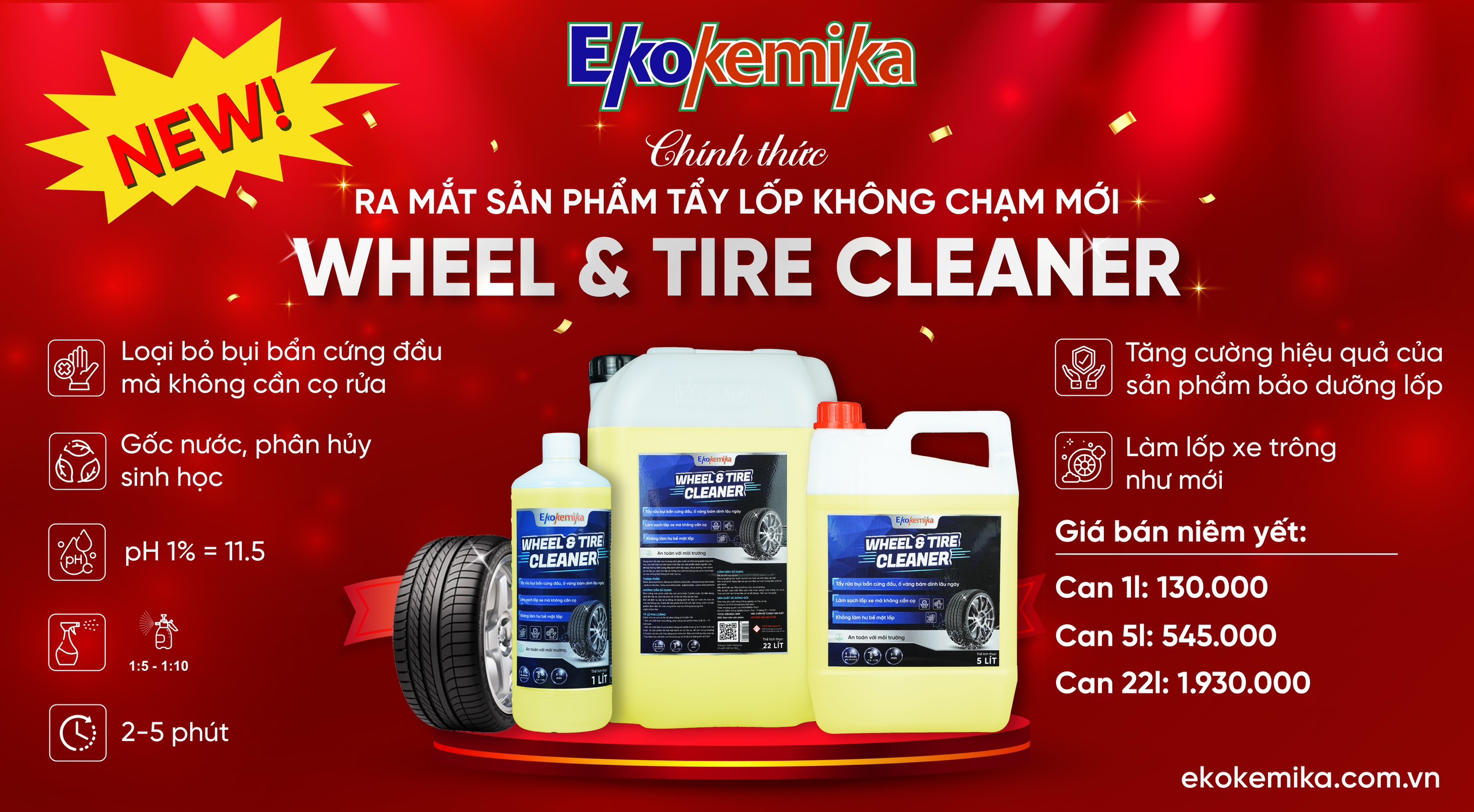 DUNG DỊCH TẨY LỐP XE EKOKEMIKA WHEEL&TIRE CLEANER Được biết đến là một trong những thương hiệu hàng đầu trong lĩnh vực chăm sóc và bảo dưỡng ô tô, Ekokemika đã không ngừng đổi mới