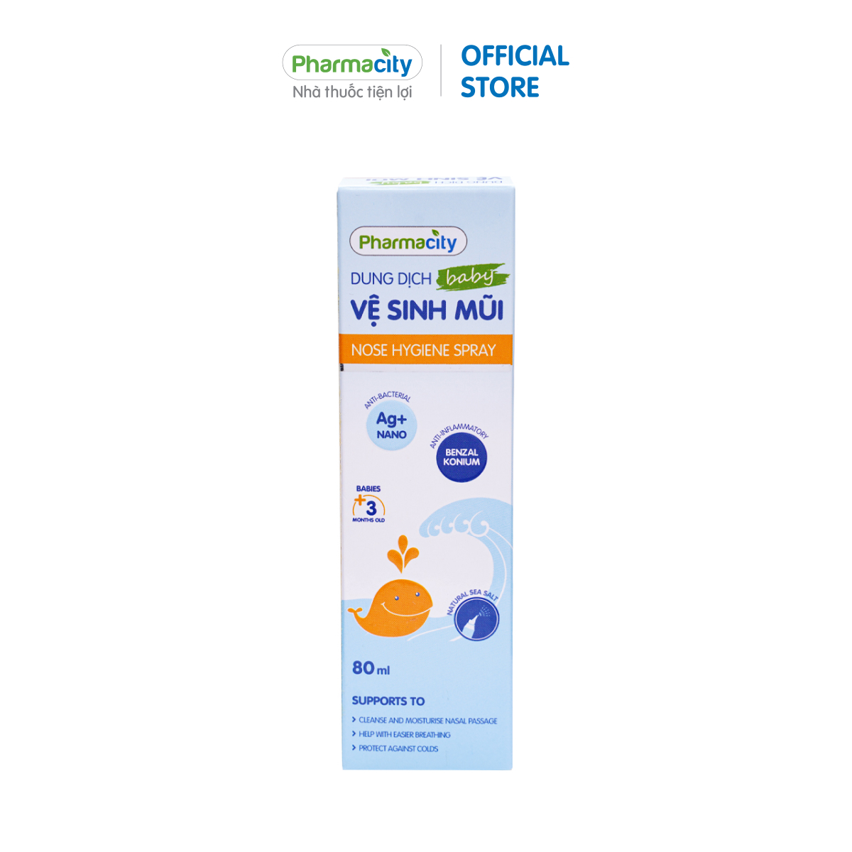 Dung dịch vệ sinh mũi cho trẻ Nose Hygiene Spray Baby được tinh chiết từ muối biển tự nhiên, giàu khoáng chất và nguyên tố vi lượng như Ca++, Na+, Cu++, Zn++, giúp làm sạch các tạp chất và dịch nhầy từ đường mũi, cải thiện hô hấp, hỗ trợ phòng ngừa và làm giảm triệu chứng sổ mũi, ngạt mũ