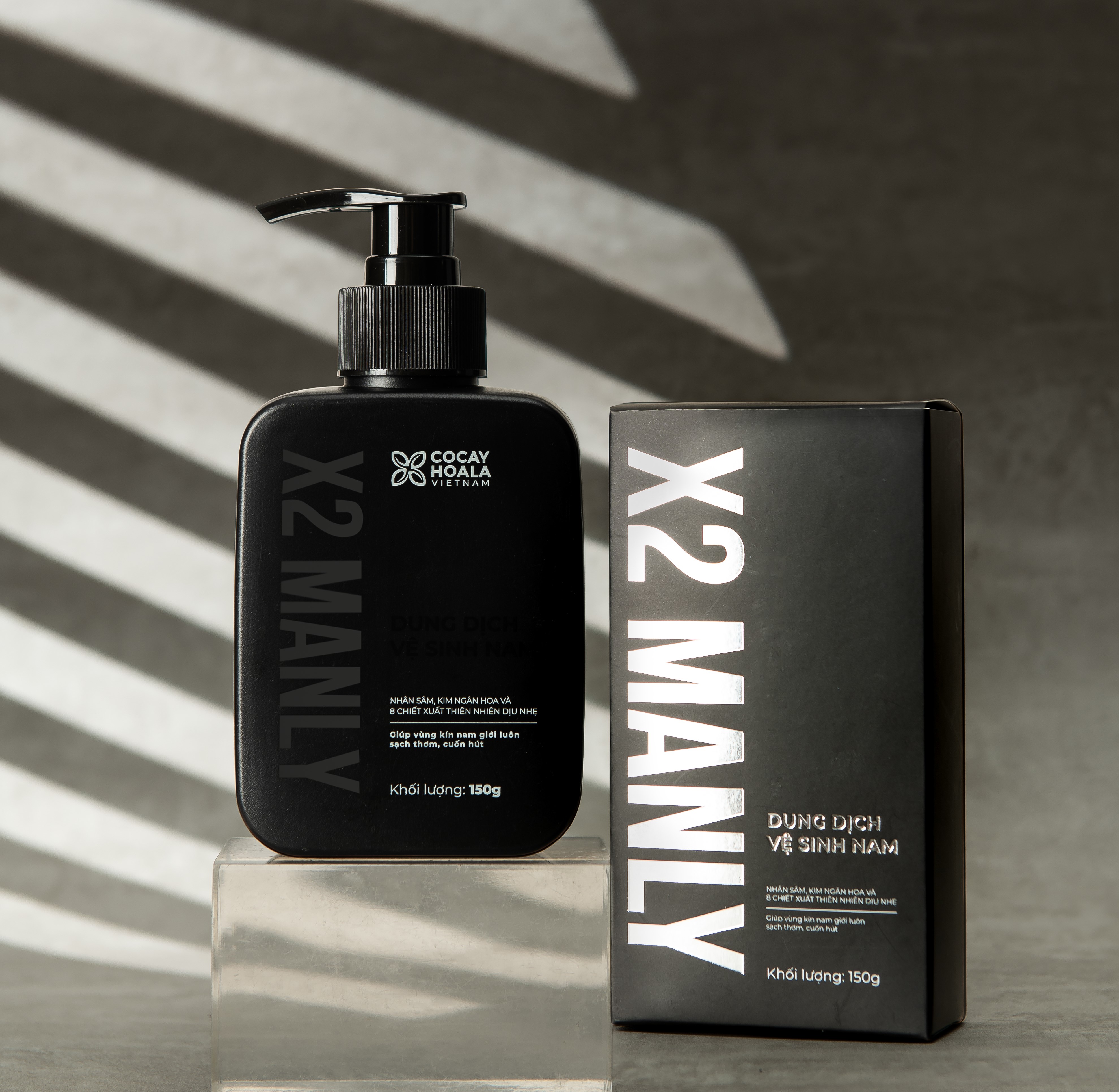 - Thành phần Dung dịch vệ sinh nam X2 Manly Dung dịch vệ sinh nam X2 Manly chiết xuất từ các loại thảo dược thiên nhiên: nhân sâm, kim ngân hoa, màng vỏ đậu, bổ sung các chiết xuất từ nho, vỏ măng cụt, cam thảo, hạt kiwi,