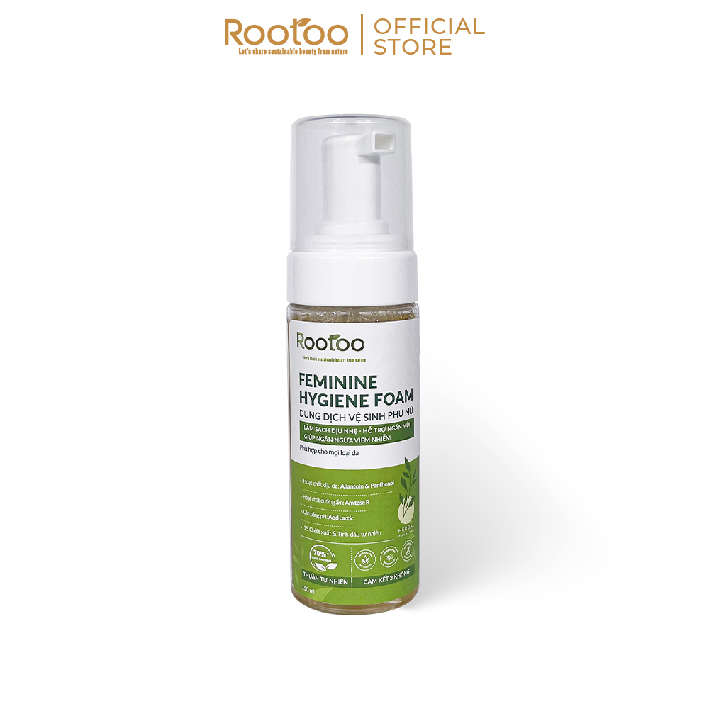 Dung Dịch Vệ Sinh Phụ Nữ Rootoo - Feminine Hygiene Foam mang đến cho bạn cảm giác thoải mái và tự tin hàng ngày. Với thành phần từ các loại chiết xuất và tinh dầu