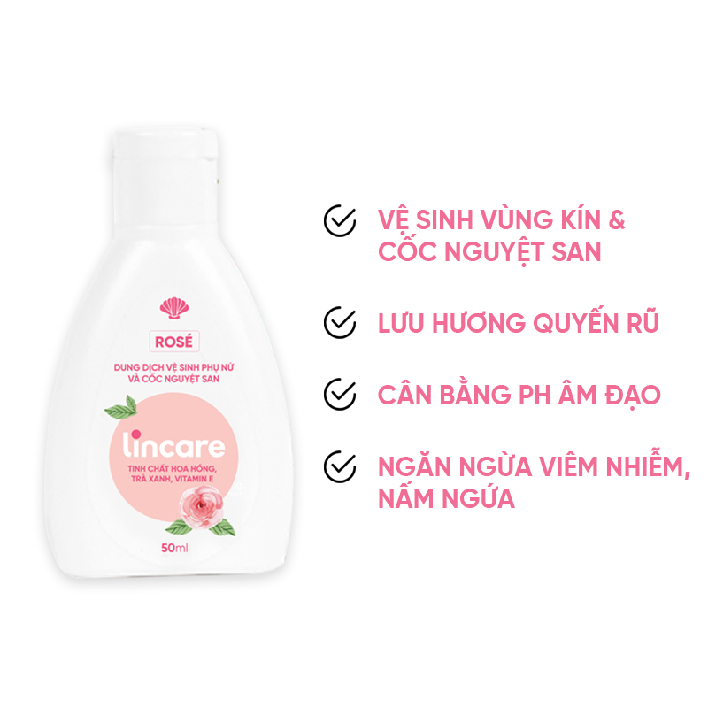Dung dịch vệ sinh phụ nữ và cốc nguyệt san Lincare Rose được chiết xuất từ những thành phần thiên nhiên dịu nhẹ giúp ngăn ngừa vi khuẩn, khử mùi, đồng thời giữ cân bằng