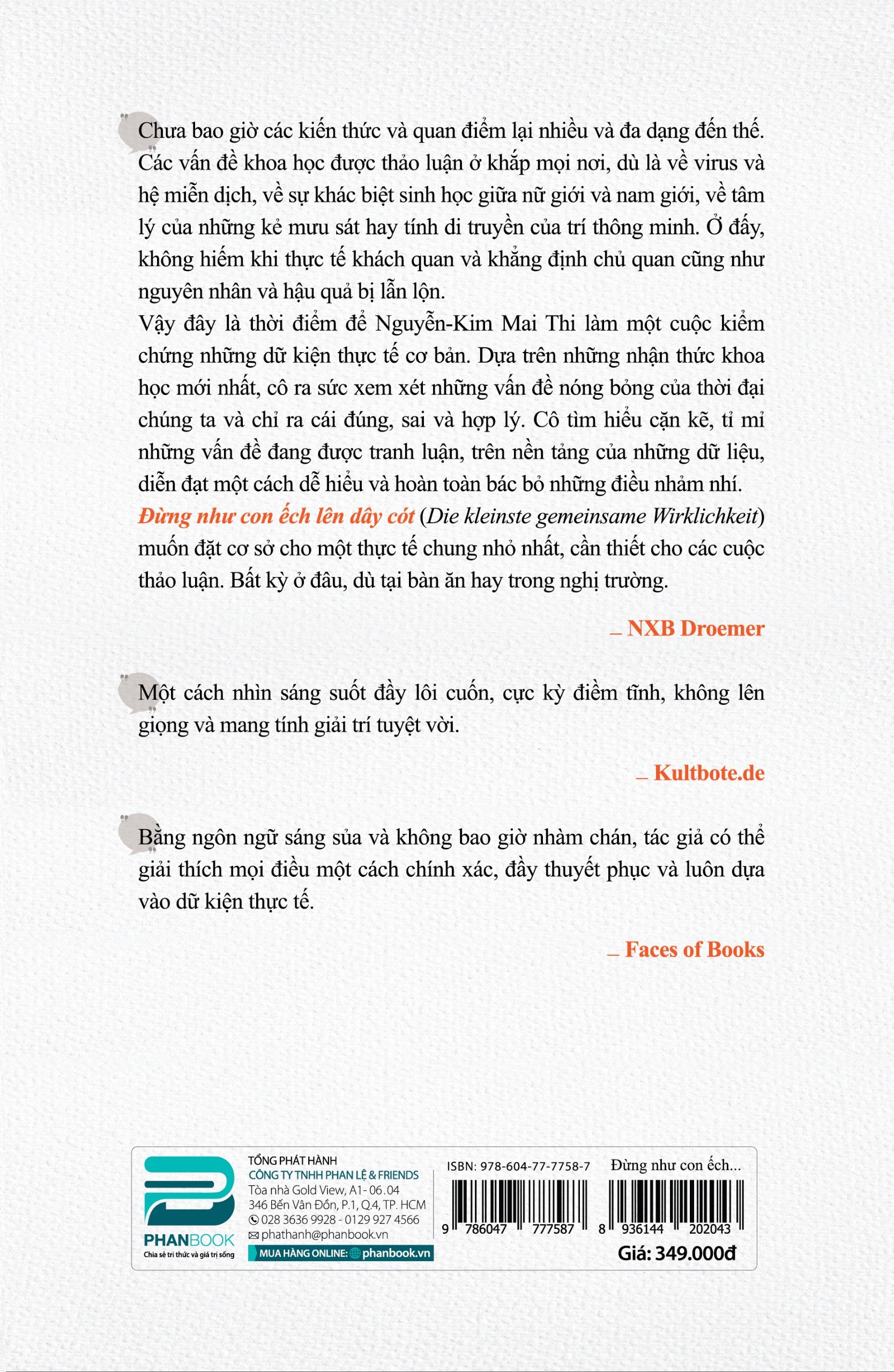 ĐỪNG NHƯ CON ẾCH LÊN DÂY CÓT Tác giả: Nguyễn-Kim Mai Thi "Chưa bao giờ các kiến thức và quan điểm lại nhiều và đa dạng đến thế. Các vấn đề khoa học được thảo