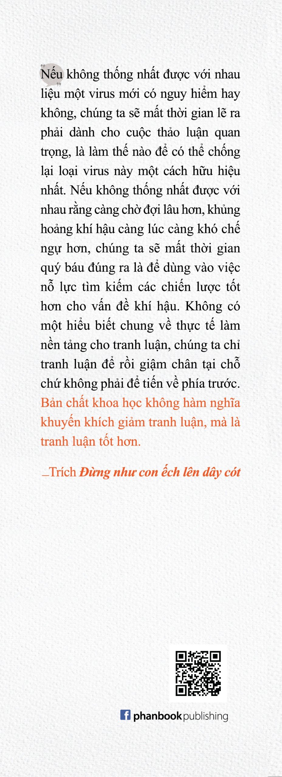 Trích dẫn sách Đừng Như Con Ếch Lên Dây Cót Nếu không thống nhất được với nhau liệu một virus mới có nguy hiểm hay không, chúng ta sẽ mất thời gian lẽ ra phải