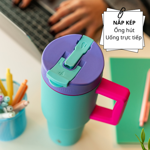 - Nắp chức năng kép: Chuyển đổi giữa nắp uống hoặc nắp ống hút để linh hoạt hơn.