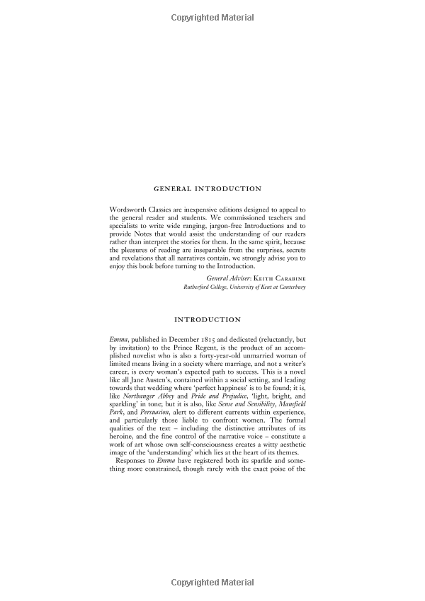 This is the "Penguin English Library Edition" of "Emma" by Jane Austen. 'I never have been in love; it is not my way, or my nature; and I do not think I ever shall'. Beautiful, clever, rich - and single - Emma Woodhouse is perfectly content with her life and sees no need for either love or marriage. Nothing, however, delights her more than interfering in the romantic lives of others. But when she ignores the warnings of her good friend Mr Knightley and attempts to arrange a suitable match for her protegee Harriet Smith, her carefully laid plans soon unravel and have consequences that she never expected. With its imperfect but charming heroine and its witty and subtle exploration of relationships, Emma is often seen as Jane Austen's most flawless work. "The Penguin English Library" contains 100 paperbacks of the best fiction written in English, from the eighteenth century and the very first novels to the beginning of the First World War .